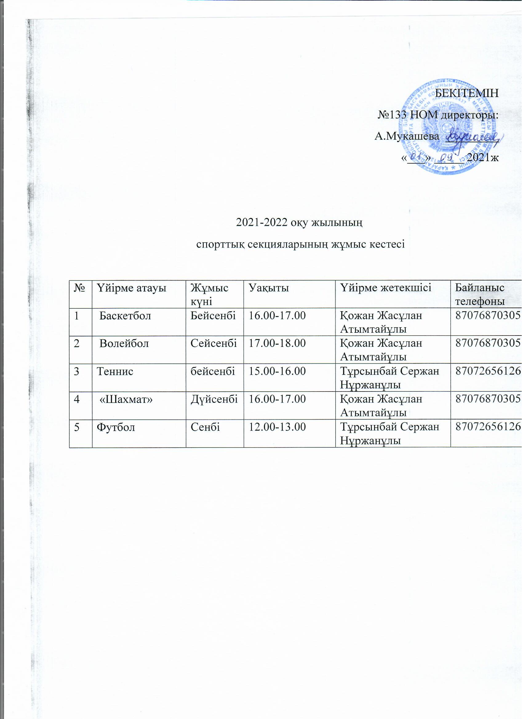 | 1 | «Уйірме және спорттық секциялар жетекшілерін тағайындау» туралы |