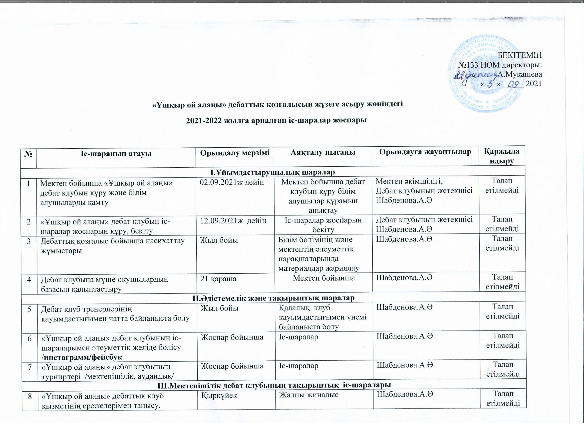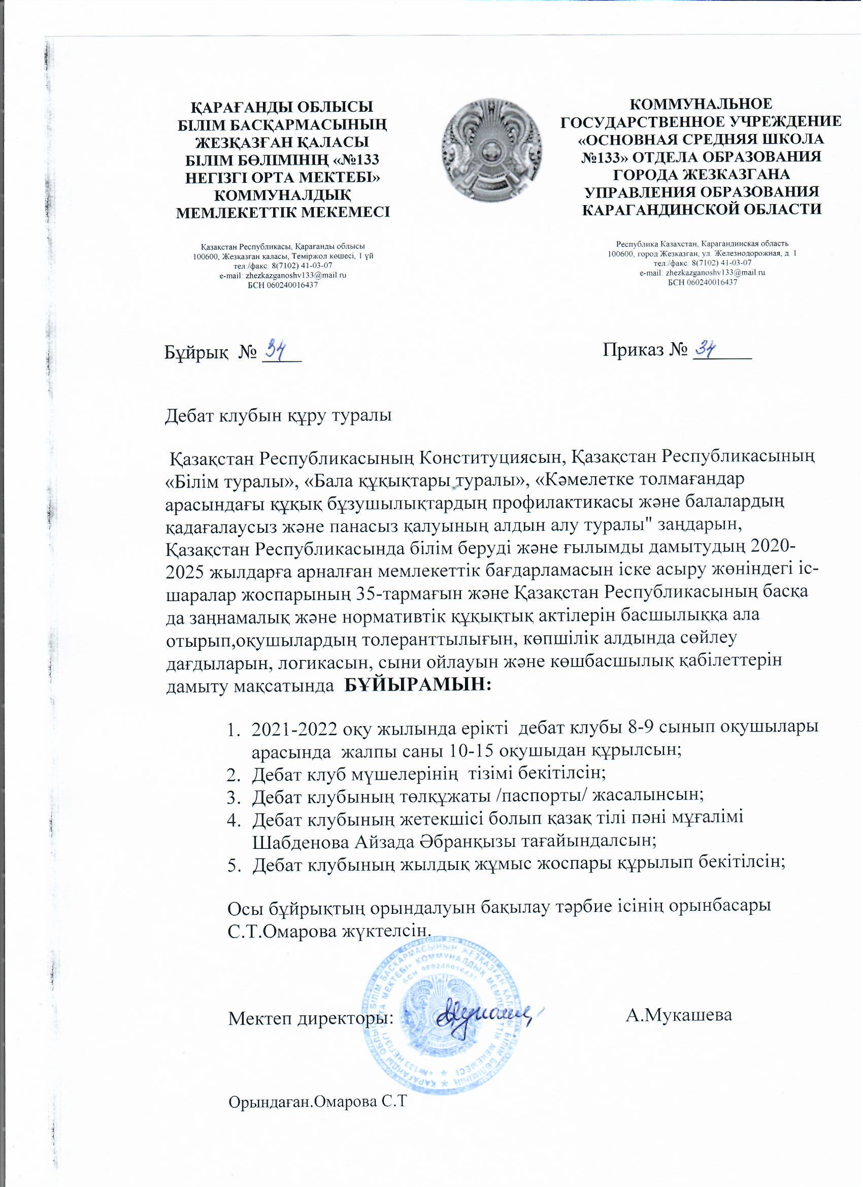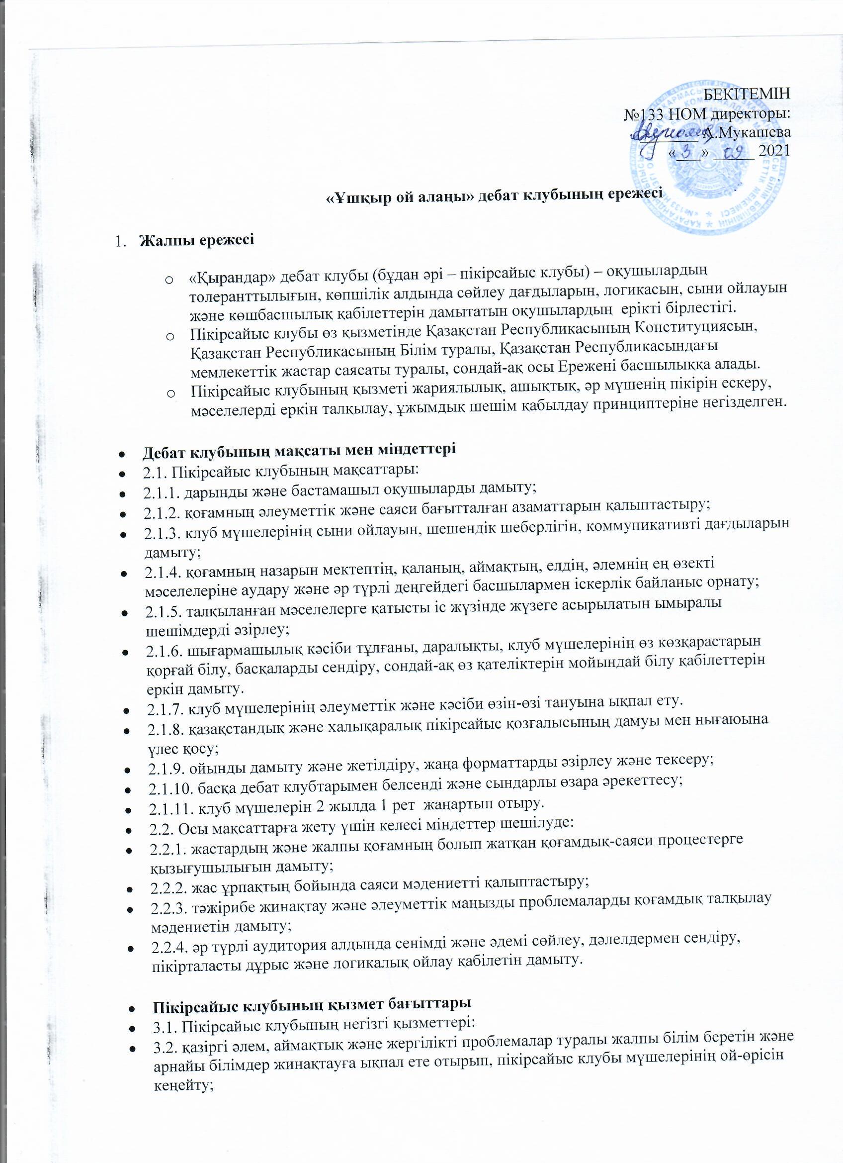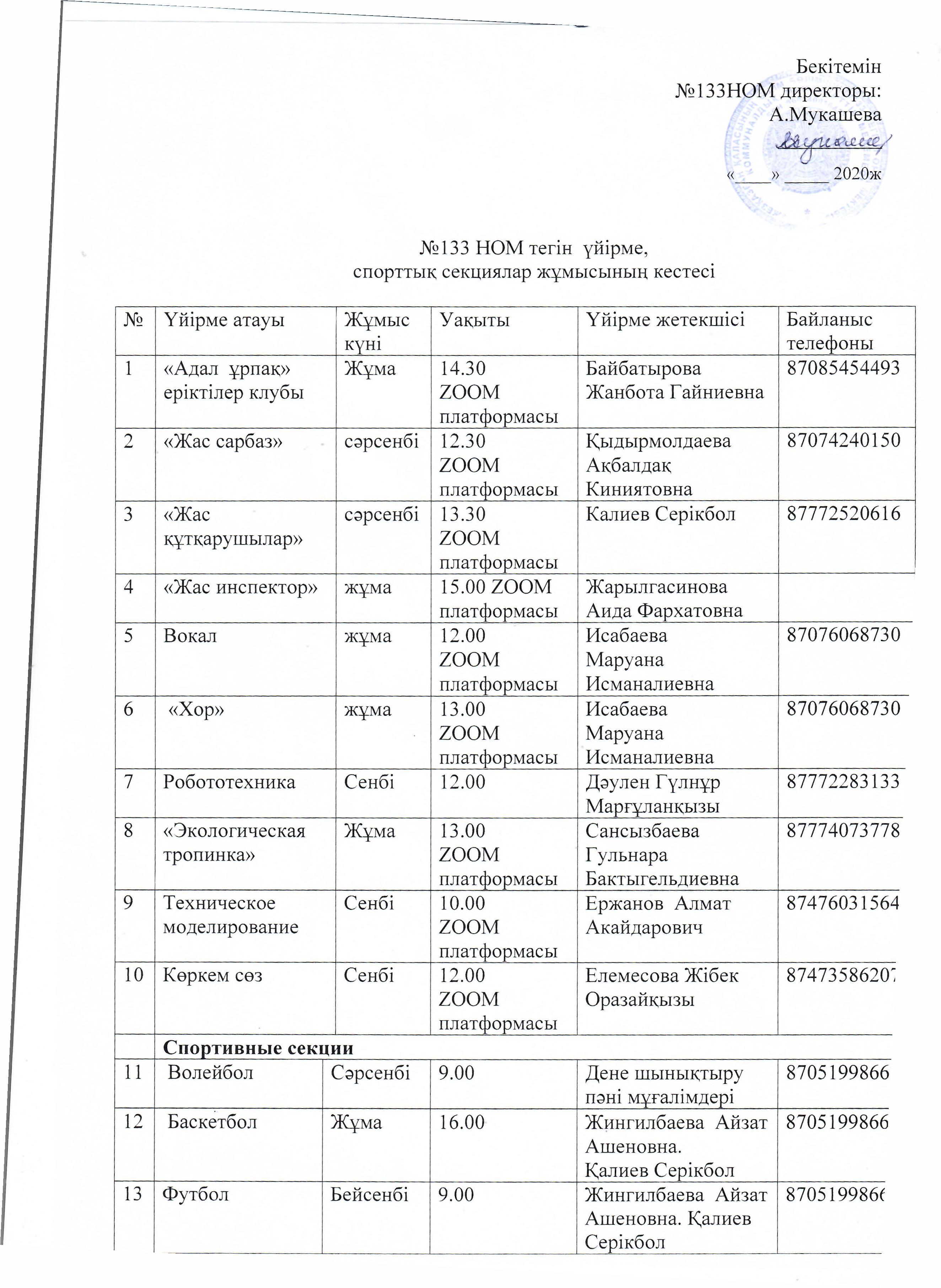 | 1 | Үйірме және спорттық секциялар жетекшілерін тағайындау, үйірме жұмысын ұйымдастыру туралы |