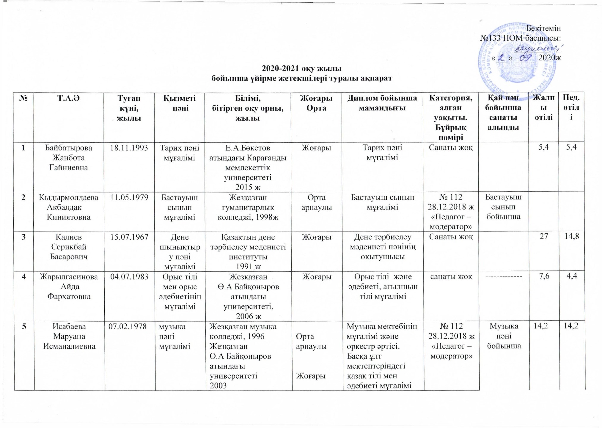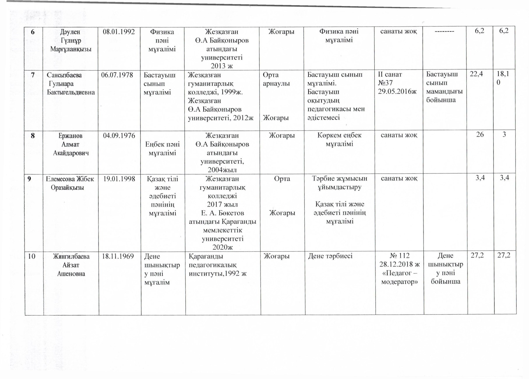 Кол-во учителей: 1. Қожан Жасулан Атымтайұлы