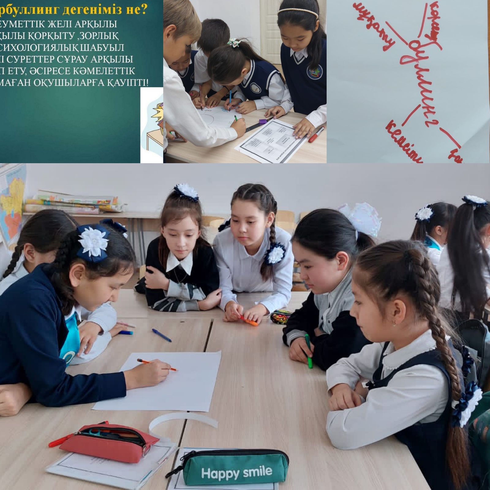 Буллинг дегеніміз не? Құқықбұзушылықтың алдын алу мақсатында 6 «А»сынып оқушыларымен буллинг дегеніміз не? тақырыбында сынып сағаты өткізілді.Іс- шара барысында оқушыларға бала құқықтары жайлы кең мәлімет берілді. Кез-келген зорлық-зомбылықтан балалардың құқықтары заңмен қорғалатындығы айтылды, тақырыпқа сай презентация көрсетілді, тапсырмалар орындалды.