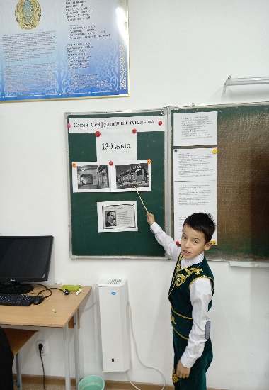 16.10.23 күні №133 негізгі орта мектебінің 3«А» сыныбында оқушыларымен қазақ халқының тарихында өшпестей орын алған қазақ зиялылары туралы мағлұматтар бере отырып, олардың есімдерін қастерлеп, құрметтеуге тәрбиелеу мақсатында ақын, жазушы, көрнекті мемлекет және қоғам қайраткері «Сәкен Сейфуллиннің туғанына 130 жыл» атты сынып сағаты өткізілді. Оқушыларға қазақ халқының көкірегі ояу, көзі ашық болуын қалап, жан қиярлық тер төккен жазықсыз қамауға алынып, репрессияға ұшыраған ұлы тұлғалары туралы мағлұмат берілді, өз ойларын ортаға салды.