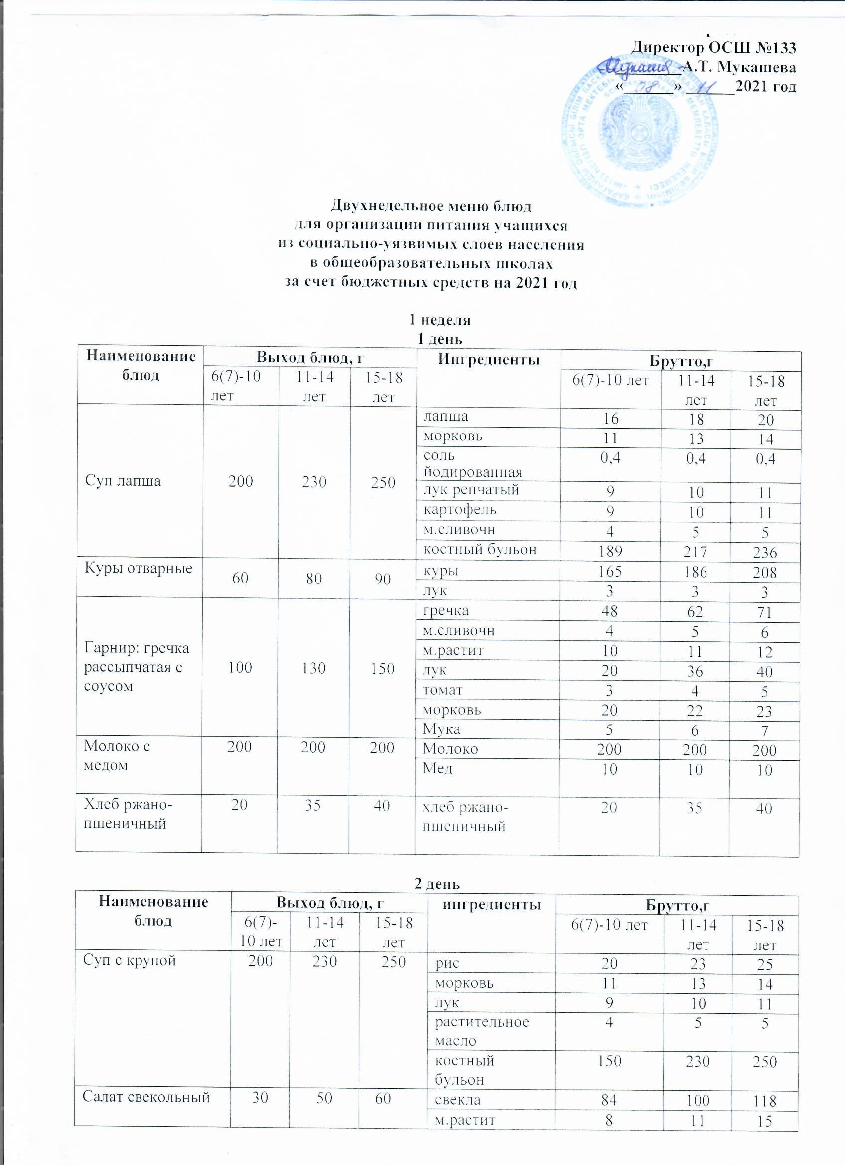 | 1 | Меню на 2025 - 2026 уч. год | |